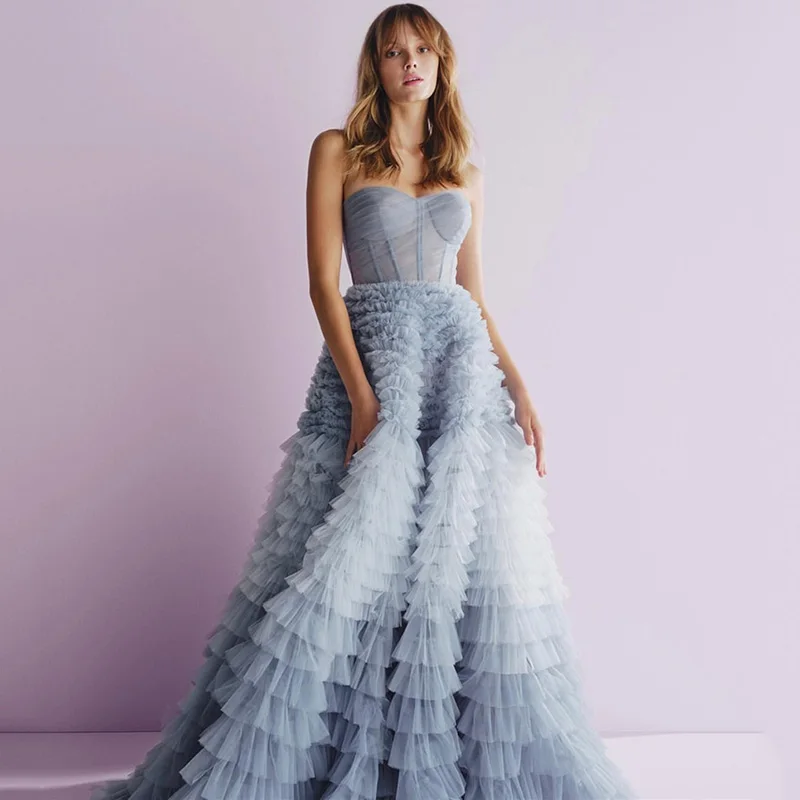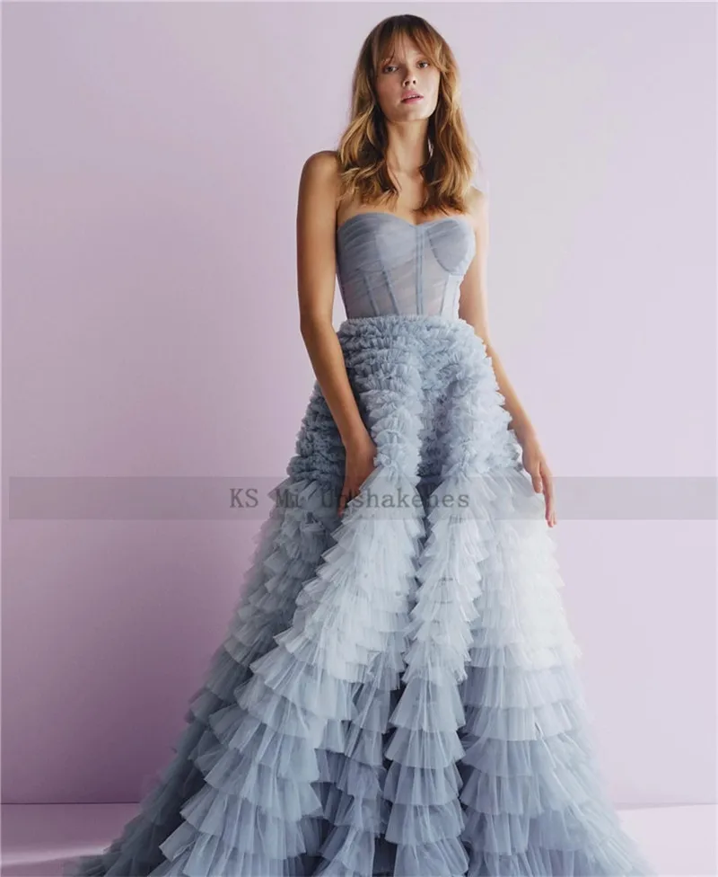 Женское вечернее платье знаменитости, синее длинное платье для выпускного вечера с многоярусной юбкой, 2021