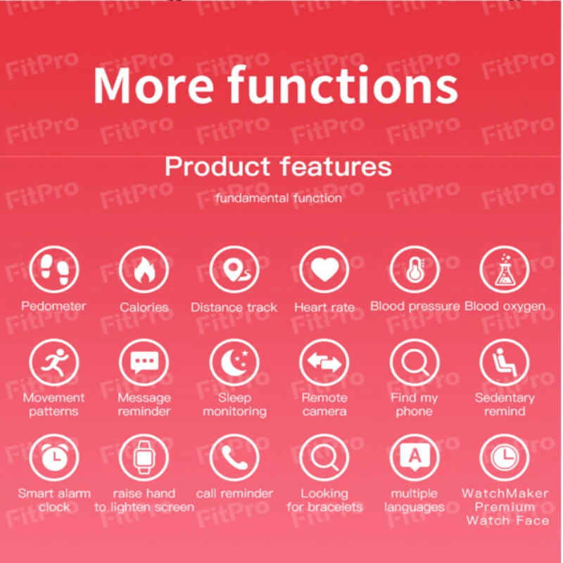 * Дополнительные функции: Поиск браслета, напоминание о тревоге, удаленная камера, поднимите руку, чтобы осветить, Управление музыкой, Погода