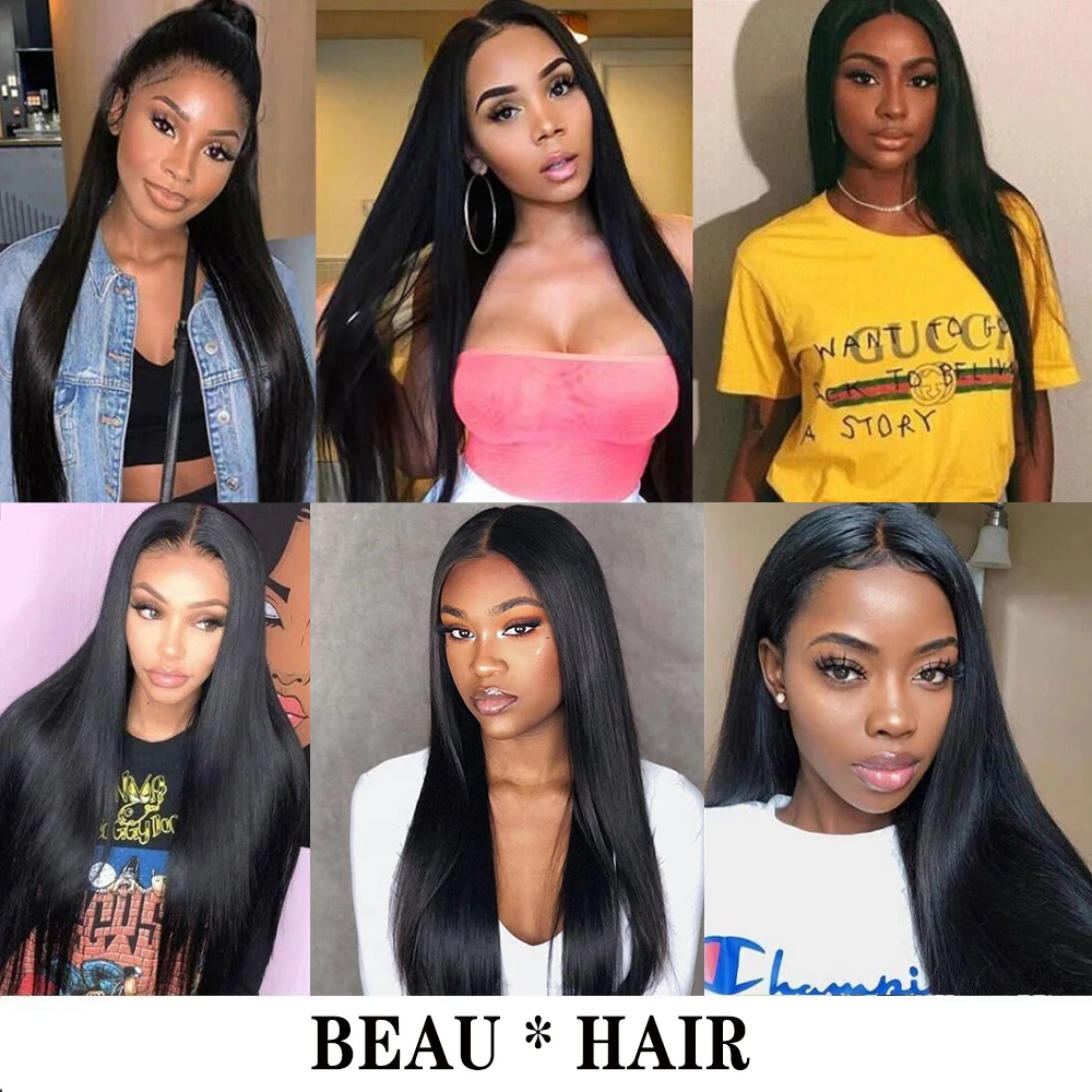 Прямые пряди человеческих волос с застежкой бразильские пряди волос с застежкой 4x4 кружевные пряди Beauhair человеческие волосы для наращивания