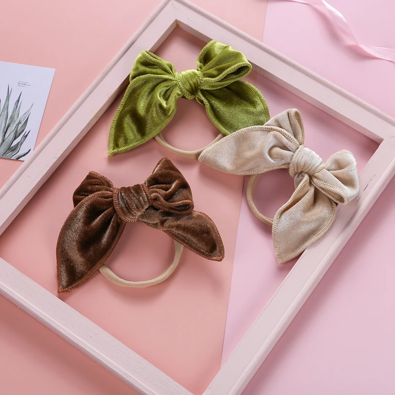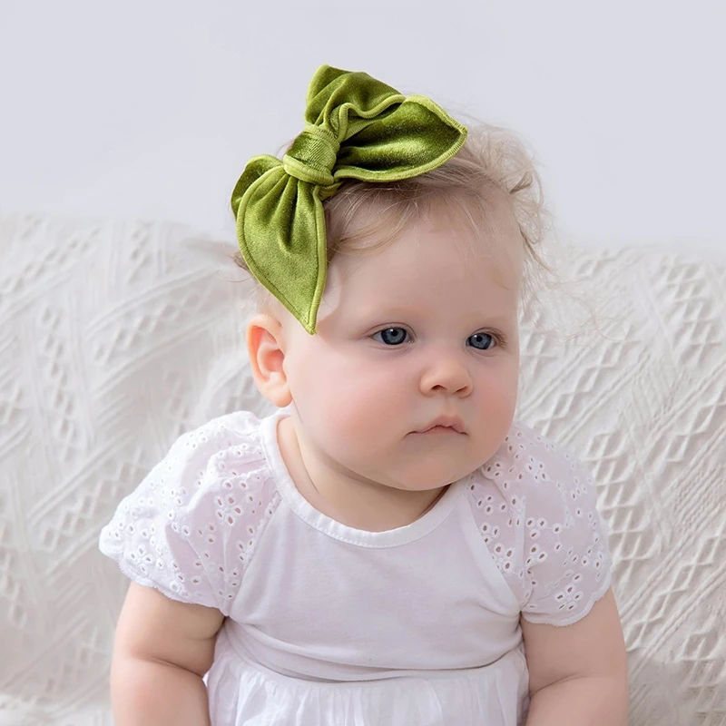 Бархатная Детская повязка на голову с большим бантом, повязка на голову для девочек, аксессуары для волос для девочек, эластичная повязка на голову для младенцев, милые детские повязки на голову