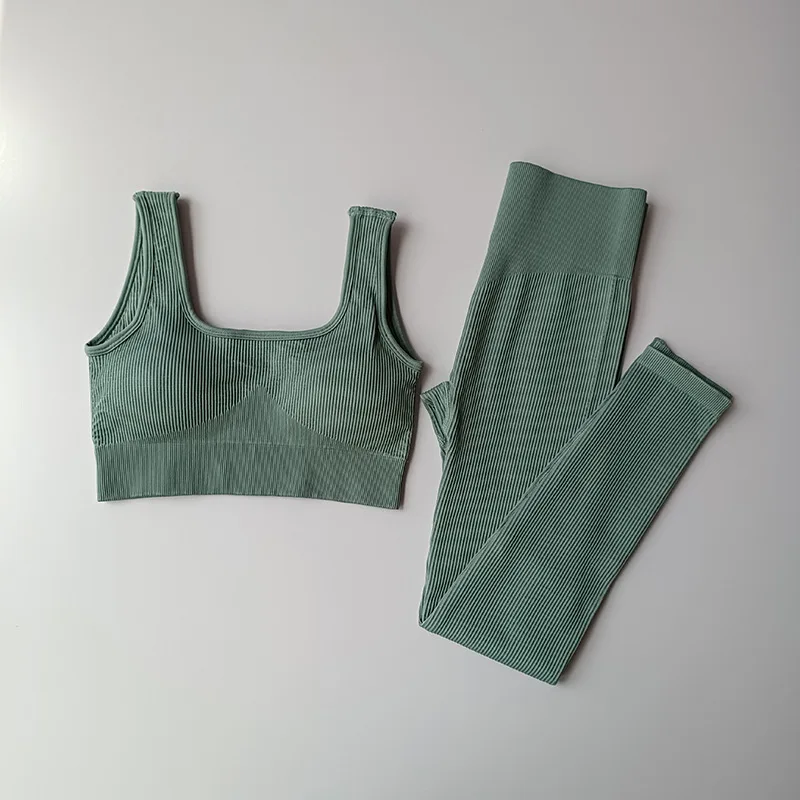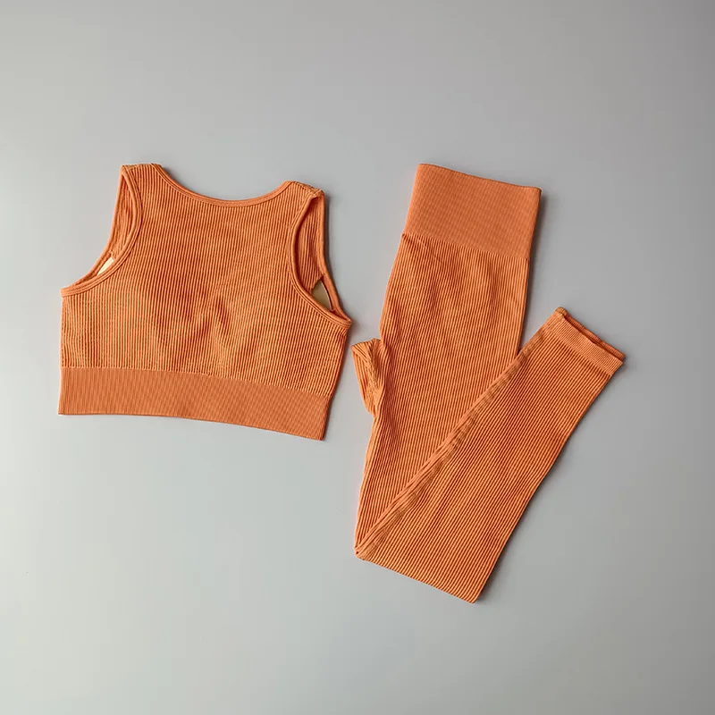 Женский бесшовный комплект из 2 предметов с v-образным вырезом для занятий йогой, женский спортивный костюм для фитнеса, сексуальный спортивный бюстгальтер, леггинсы с высокой талией, одежда для тренировок