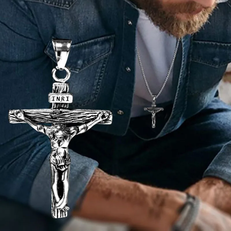 Винтажное ожерелье с подвеской в виде Креста Распятие INRI Иисуса, ...
