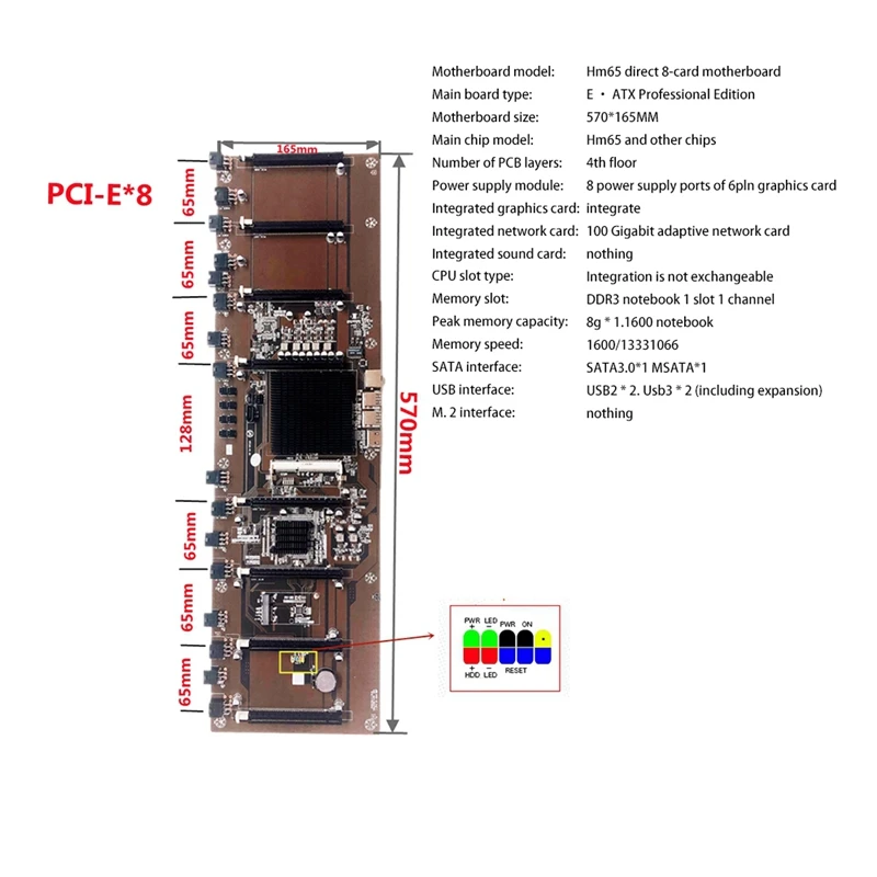 HM65 прямая вставка, восемь слотов для карт, Твердотельный конденсатор BTC B250, материнская плата с несколькими картами, поддержка 1660 2070 3090 Rx580