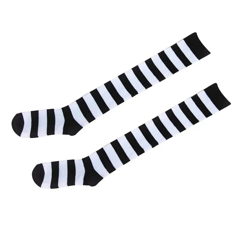 Гольфы выше колена черные белые синие красные длинные полосатые Япо...