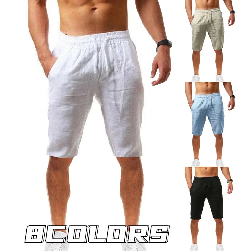 Шорты мужские из хлопка и льна, однотонные, дышащие, для фитнеса
