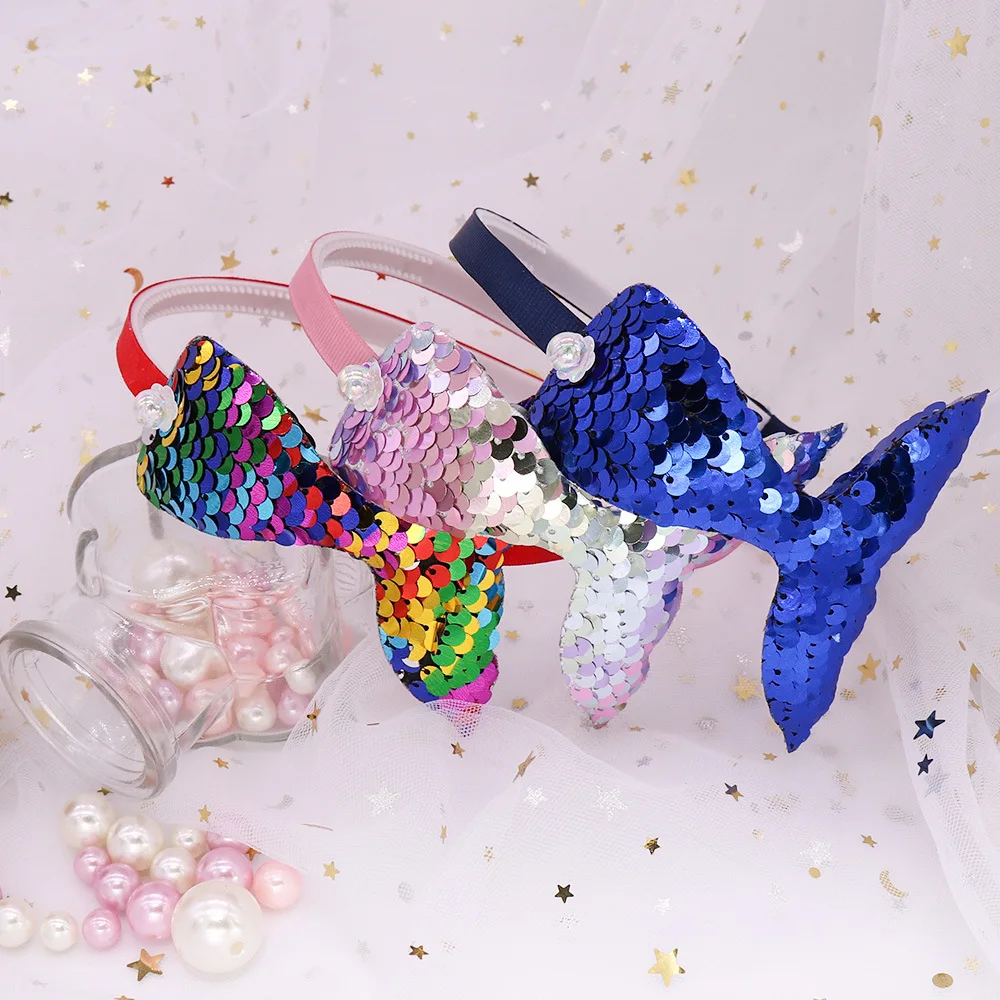 Одеяло хвост русалки разноцветных блесток повязка на голову с рисунком маленькая русалочка тема партии подарок Подводное царство дети девушка Русалка День рождения поставки