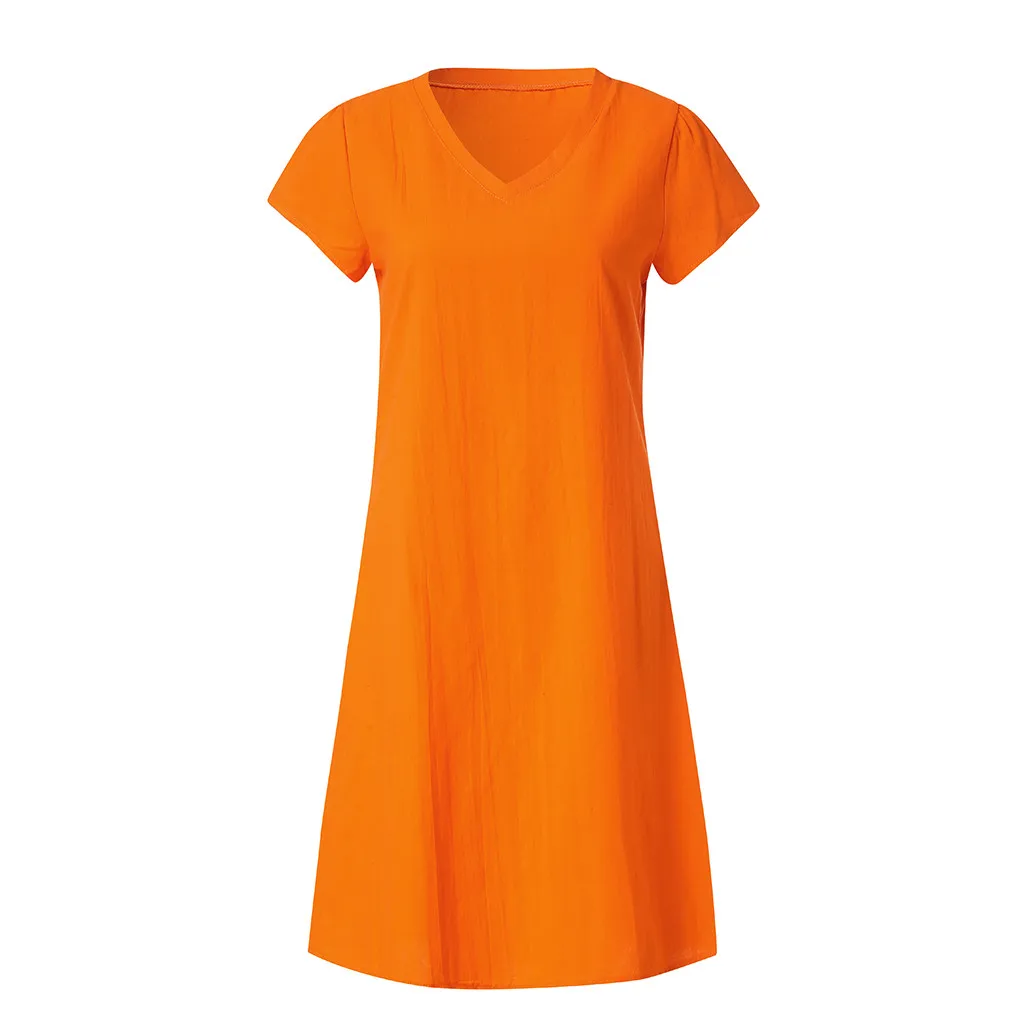 Платье женское летнее с коротким рукавом и V-образным вырезом