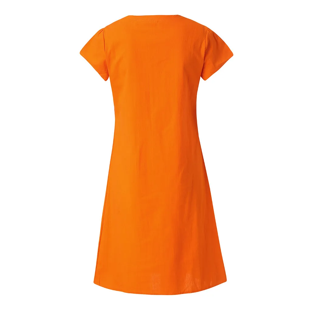 Женское льняное платье с коротким рукавом, повседневное свободное Х...