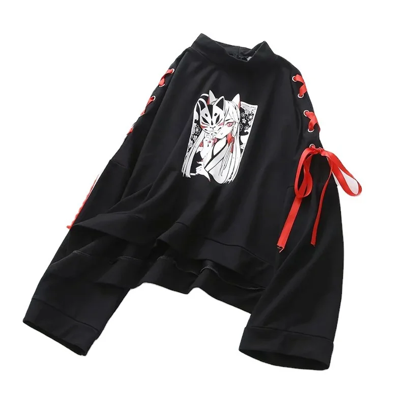 Летняя женская одежда с принтом аниме лисы перекрестной ленты Женск...