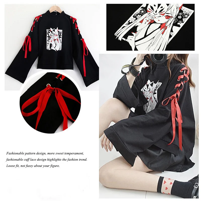Новинка 2021, летняя женская одежда, аниме, принт лисы, перекрестная лента, Лолита, футболка для девочек, Весенняя черная юбка-топ в стиле Харадзюку