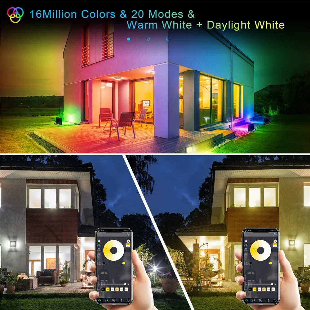 Уличные светодиодные прожекторы RGB с Bluetooth, 20 Вт, умные проже...