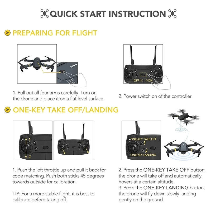 720P/1080P/4K E58 складной Радиоуправляемый Дрон Безголовый режим беспилотный летательный аппарат воздушный Квадрокоптер для фотографий Радиоуправляемый игрушечный самолётOOTDTY100% новый и высокое качествоОсобенности:С складными ручками, малый размер, легко носить с собой.С функцией Wi-Fi можно подключать систему приложений для съемки фотографий, видео, передачи в реальном времени через Изображение камеры телефона.Квадрокоптер высокой четкости, широкоугольная камера дает широкие изображения и видео высокой четкости.При безголовом режиме не нужно регулировать положение самолета перед полетом.С помощью одной кнопки Функция возврата позволяет легко найти путь домой.Фюзеляж квадрокоптера изготовлен из высокопрочного и стойкого к падению пластика, легкий и прочный.Высокая скорость, низкий уровень шума, длительный срок службы и высокая производительность.Функции: складные ручки, одностороннее снятие, посадка одним ключом, фиксированная высота оптического потока, вперед, назад, летит из стороны в сторону, быстрая и медленная передача трех передач, поворот на 360 градусов, Безголовый режим, возврат одной кнопкой, Аварийная остановка, WiFi мобильный телефон в режиме реального времени передачи и управления.Спецификация:Название продукта: складной Радиоуправляемый ДронРасстояние управления: 80-100 метровВремя зарядки: около 80 минутВремя работы: 15 минутЛитиевая батарея: 3,7 V 600mAH литий-ионная аккумуляторная батареяМатериал: пластикДополнительные стили: 720P/1080P/4KЦвет: черныйРазмер: app.27x19x5cm/10.63x7.48x1.97inКоличество: 1 комплектПримечание:Возможны отклонения в 0-1 см вследствие измерений вручную. Пожалуйста, убедитесь, что вы не возражаете, прежде чем сделать ставку.Из-за разницы между различными мониторами изображение может не отражать фактический цвет изделия. Спасибо!Посылка включает в себя:1 x Радиоуправляемый квадрокоптер1 пульт дистанционного управления1 х Аккумулятор1 х USB кабель для зарядки4 x пропеллера1 x Руководство (другие демонстрационные аксессуары на картинке не включены!)