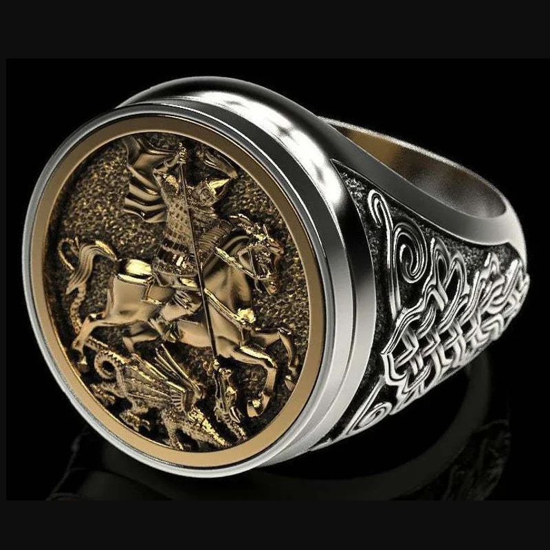 Кольцо мужское, круглое, с рисунком Римского солдата, в стиле ретро