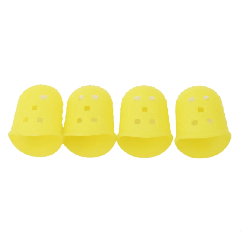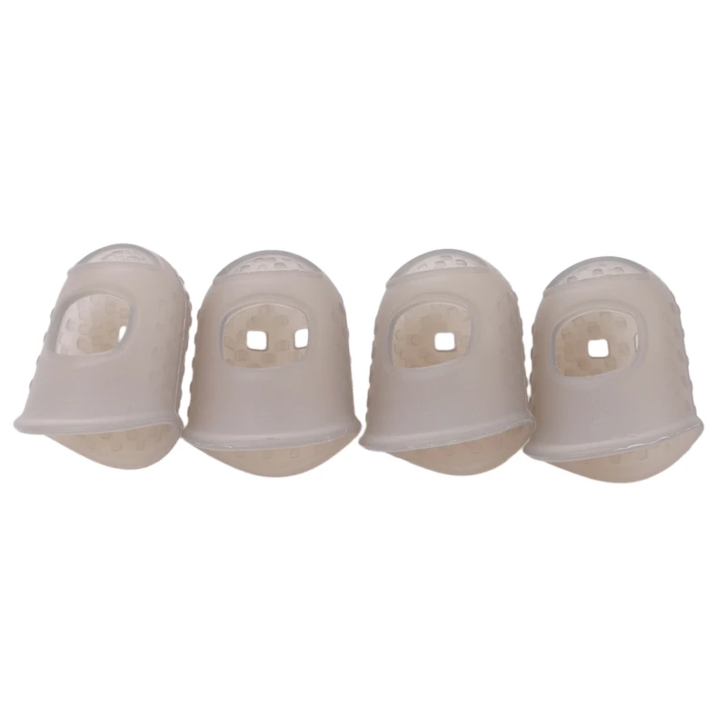 Особенности:-4 шт. набор разных гибких захватов для пальцев.-Вентилируемые ручки не запотеют и не пахнут пальцами.-Защита для пальцев, защита для безболезненной игры.-Одинаково хорошо работает с другими струнными инструментами, гитарой, банджо, мандолиной, укулеле.Материал: силикагельЦвет: прозрачный, серый, желтый, розовый, голубой, темно-синий