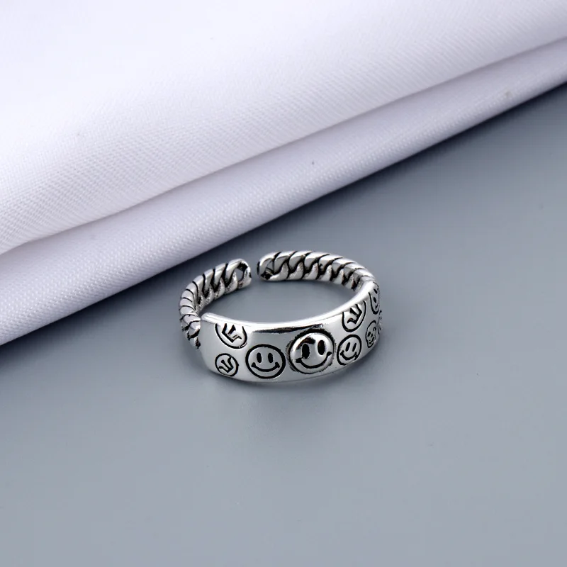 Женское Винтажное кольцо CIAXY, Открытое кольцо в стиле панк, хип-хоп, регулируемое, с улыбающимся лицом, 925
