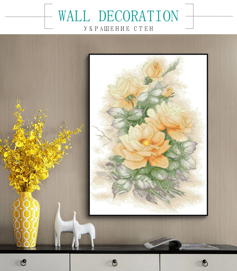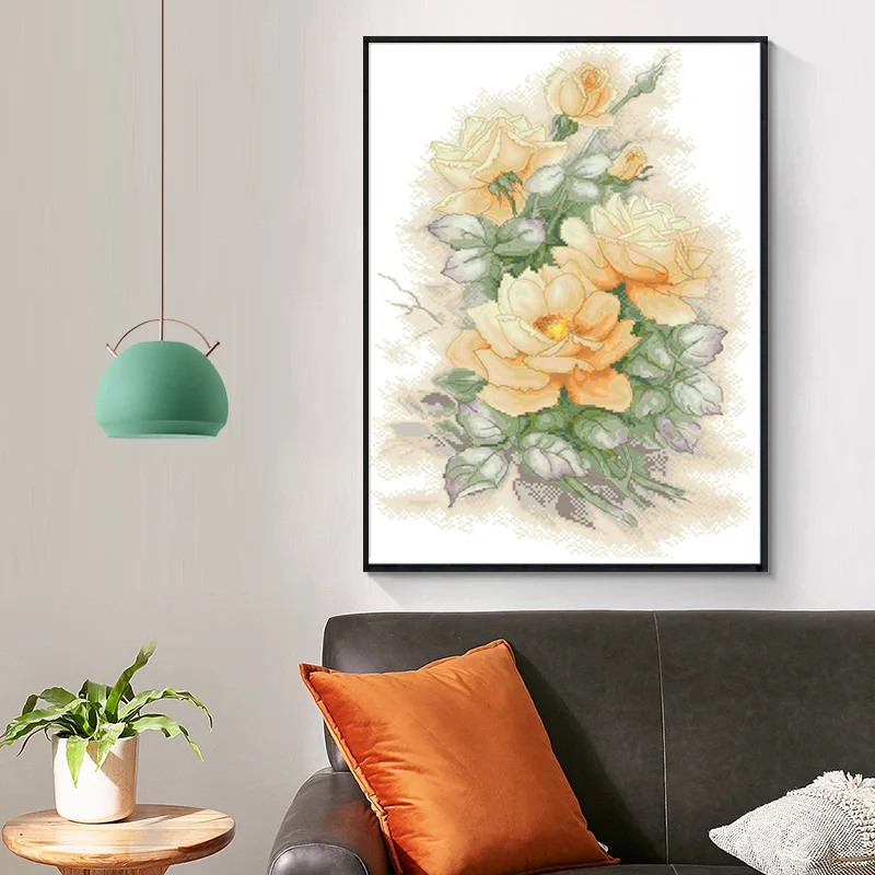 Набор изящных желтых розовых крестиков, ткань с цветочным принтом, Набор для вышивки 11CT 14CT, сделай сам, рукоделие, домашний Декор, живопись