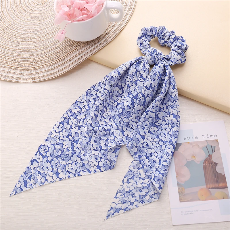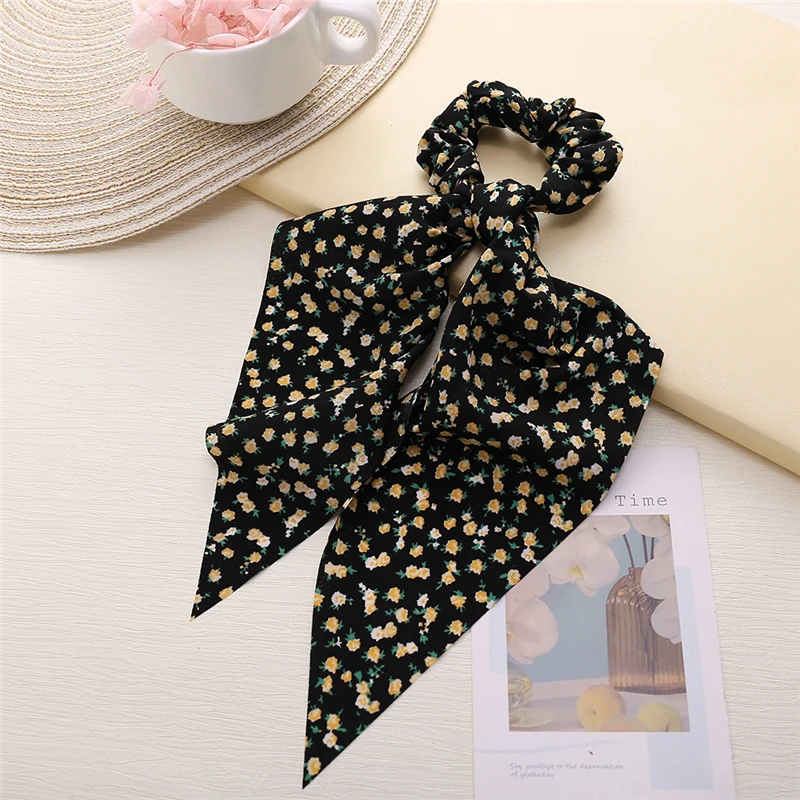 Модные яркие, с атласным бантом и длинные шелковые ленты для женщин резинка для волос шарф хвост держатель резинки для волос аксессуары для волос