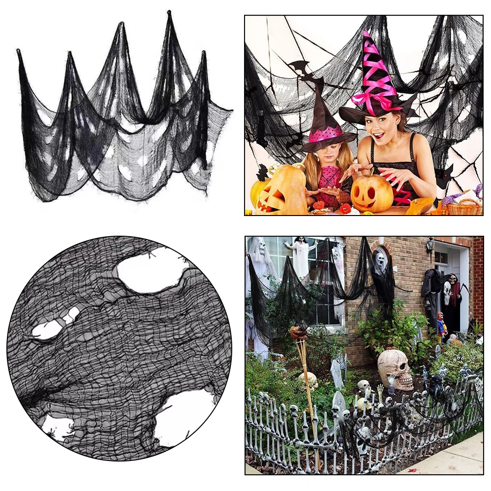 Марлевое украшение на Хэллоуин, супер размер, жуткая ткань, украшение на Хэллоуин, портативная черная белая сетка, товары для вечерние, марля