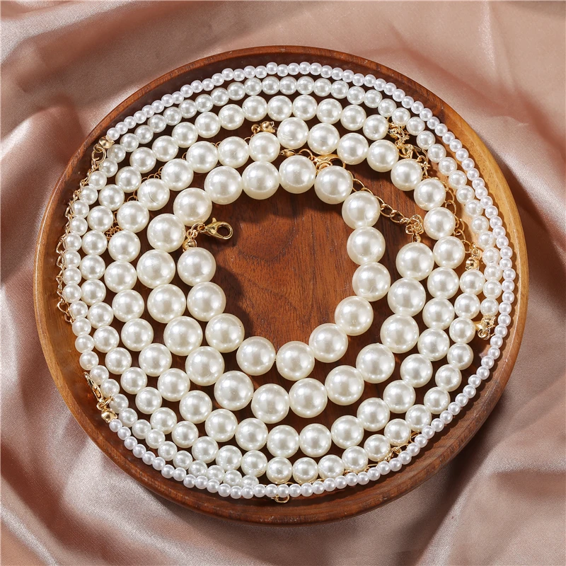 Женское жемчужное ожерелье, белое колье с искусственным жемчугом, э...