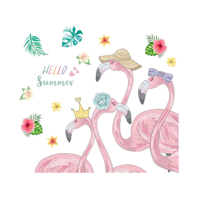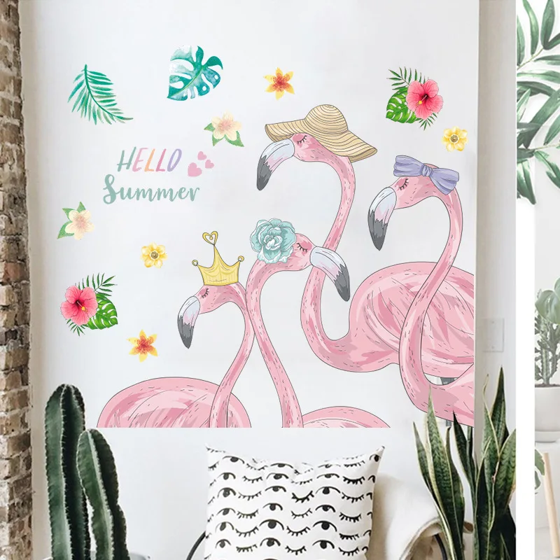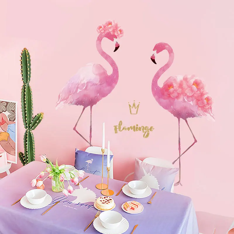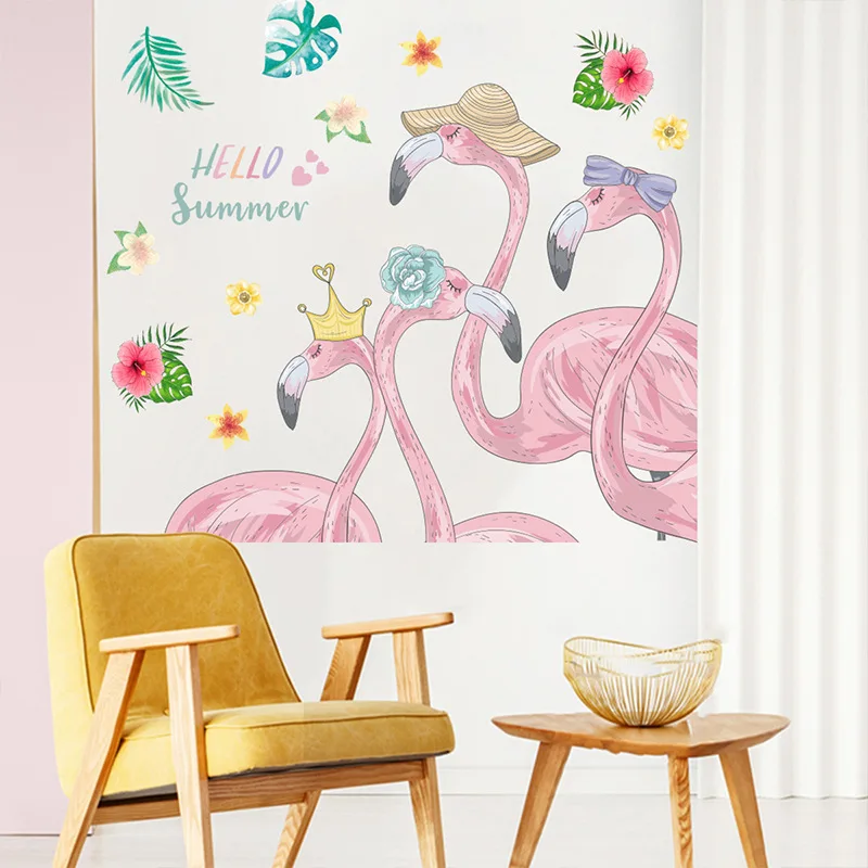 Наклейки на стену с розовым фламинго для девочек, гостиной, мебели, дверей, самоклеящиеся детские обои, украшение для детской, наклейка на стену
