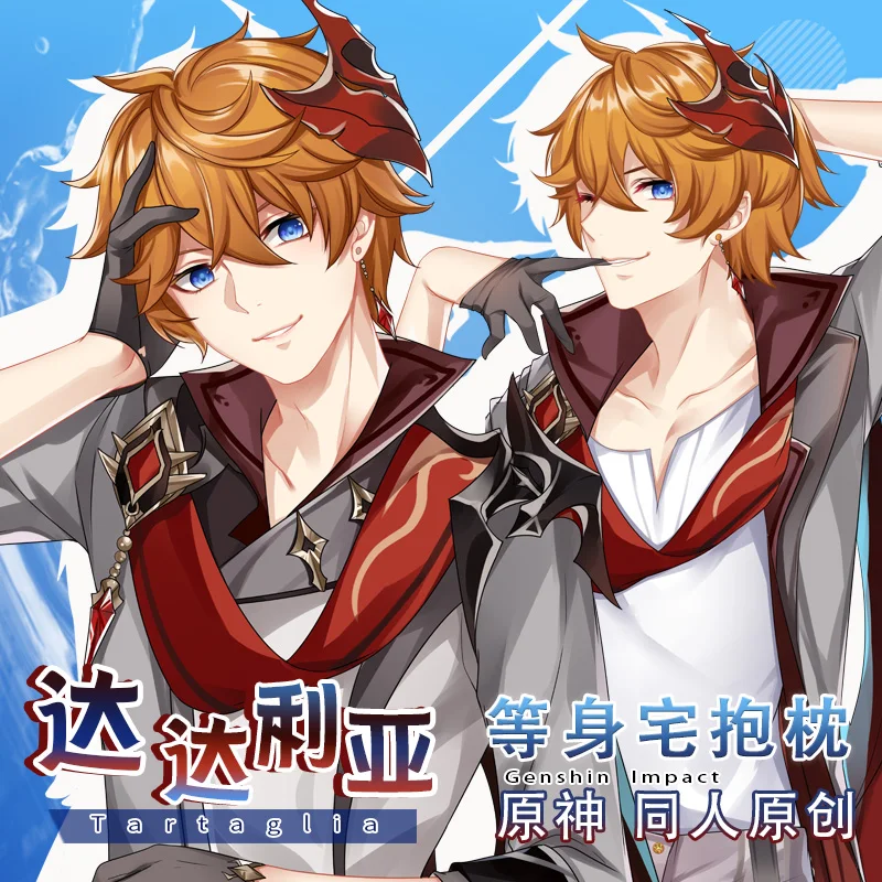 Наволочка Game Genshin Impact Tartag Dakimakura для мужчин Otaku, наволочка для обнимающей подушки, тартаглия, персиковая кожа, наволочка с принтом на все тело