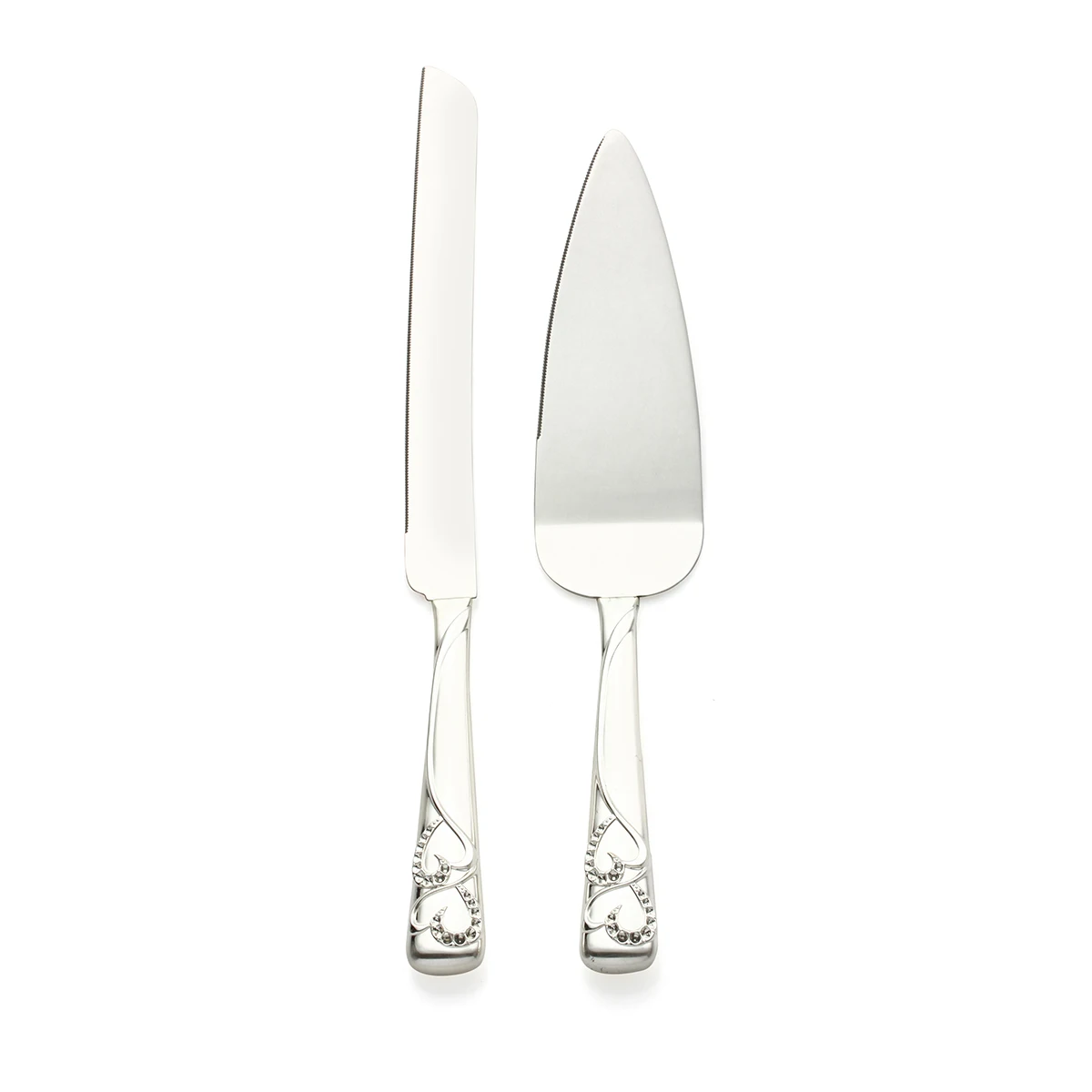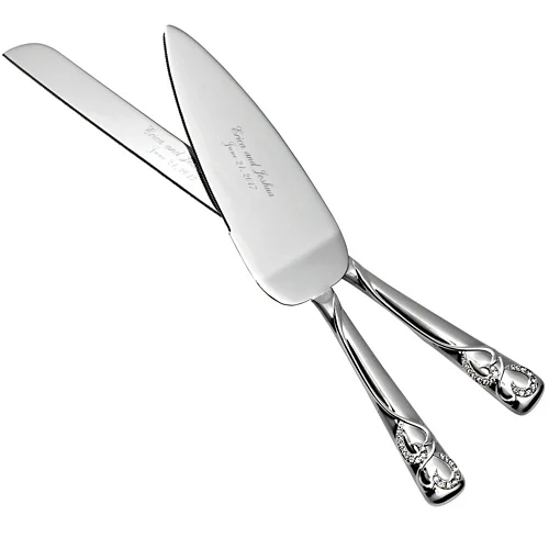 Описание* Гравировка на обеих частях-Персонализируйте ваш набор сервировки для свадебного торта; Гравировка до 3 линий на сервер и нож* Серебряная гравировка-резак для тортов и серверный набор выгравированы для «серебристого на серебряном» внешнего вида; Обе части выгравированы* Романтичный стиль-скульптурные сердечки акценты как на ноже торта, так и на лопатке* Детали дизайна-набор для резки свадебных тортов с посеребренными ручками, матовой и блестящей отделкой; Зубчатые лезвия; Сервер длиной 11 дюймов и нож длиной 13 дюймов* KEEPSAKE-персонализированный подарочный набор ножей для торта и сервера делает симпатичный свадебный подарок и отличный товар для свадьбы, юбилея, quinceañeras и дней рождения