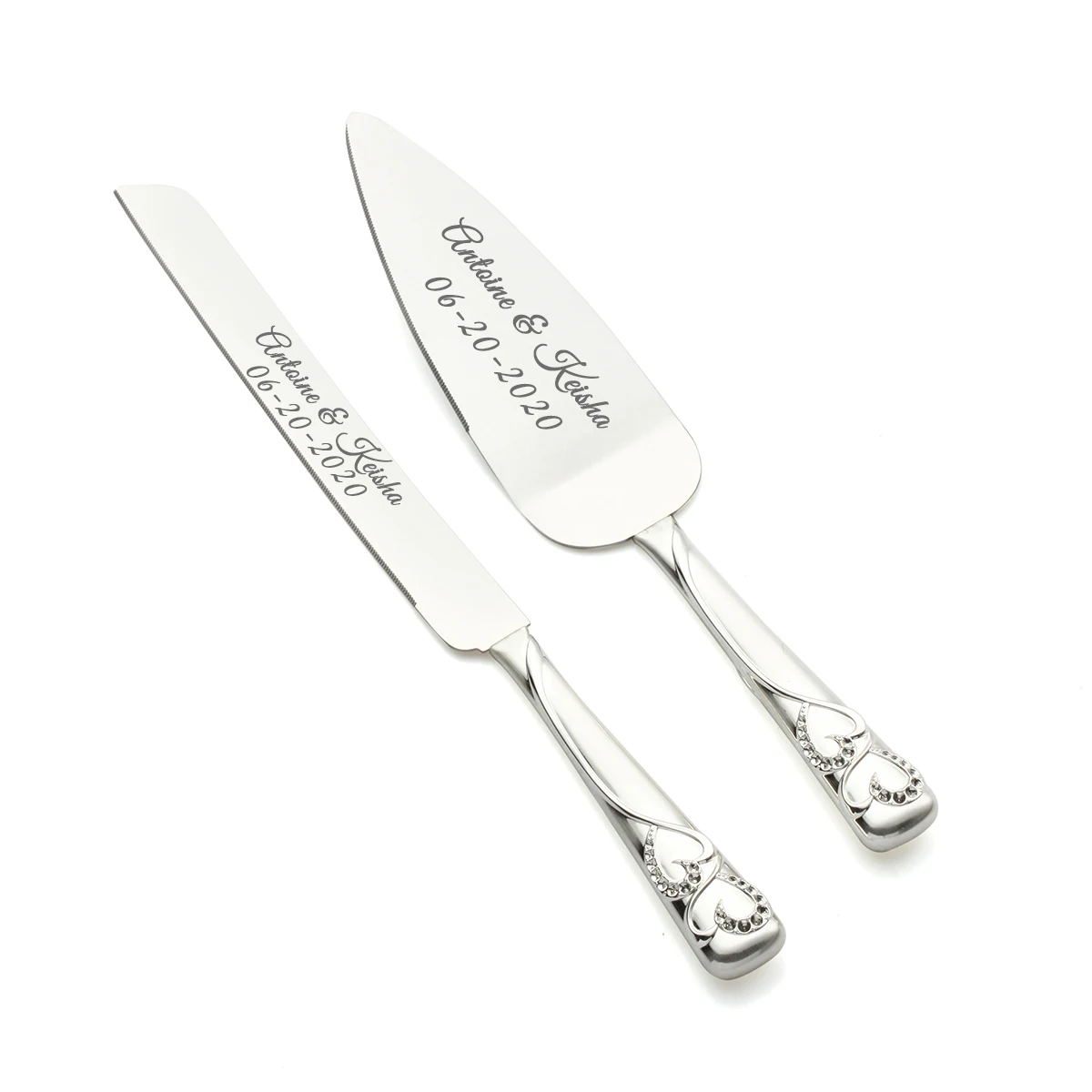 Нож для свадебного торта с индивидуальной гравировкой, сверкающий нож для торта и набор серверов, свадебный подарок на заказ с коробкой, товары Вечерние