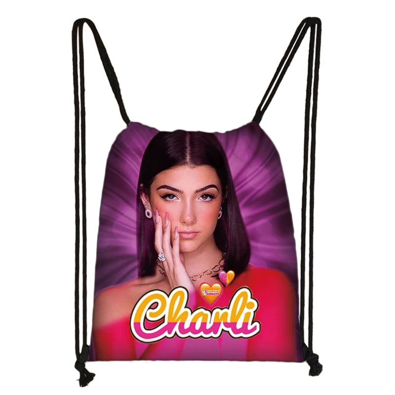 Детские Сумки на шнурке Charli Damelio для мужчин и женщин, студенческие сумки для шоппинга, школы, путешествий, вечеринок
