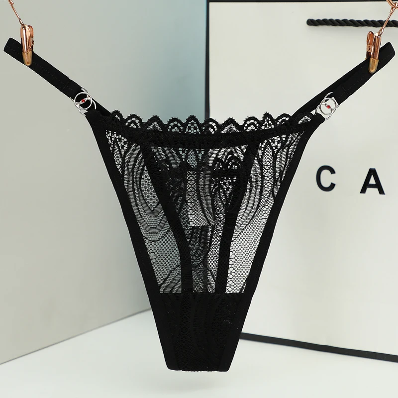 Женские стринги кружевные трусики пикантные бикини регулируемое ниж...