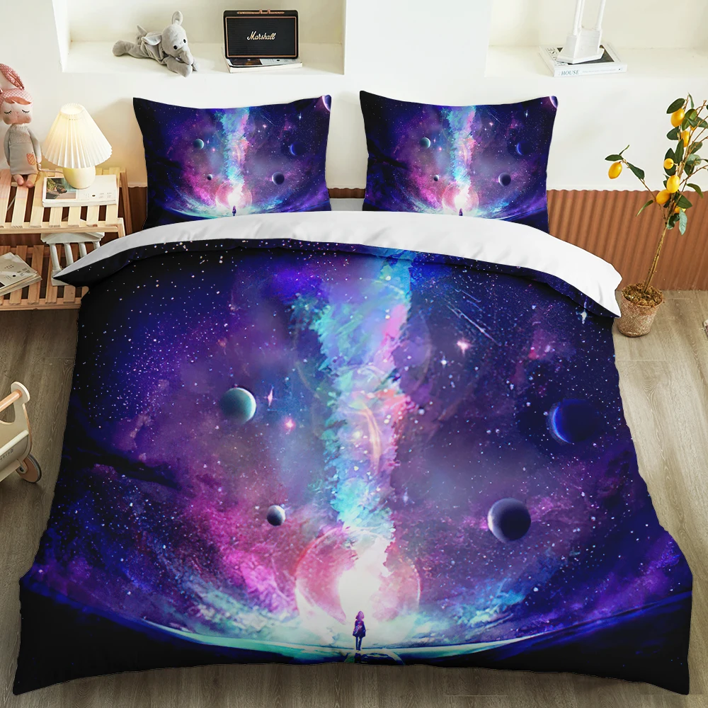 Комплект постельного белья Galaxy Starry Sky, с 3D принтом, королева, Кинг, одна спальня, Декор, Комплект постельного белья с космосом, наволочка, мягкий пододеяльник