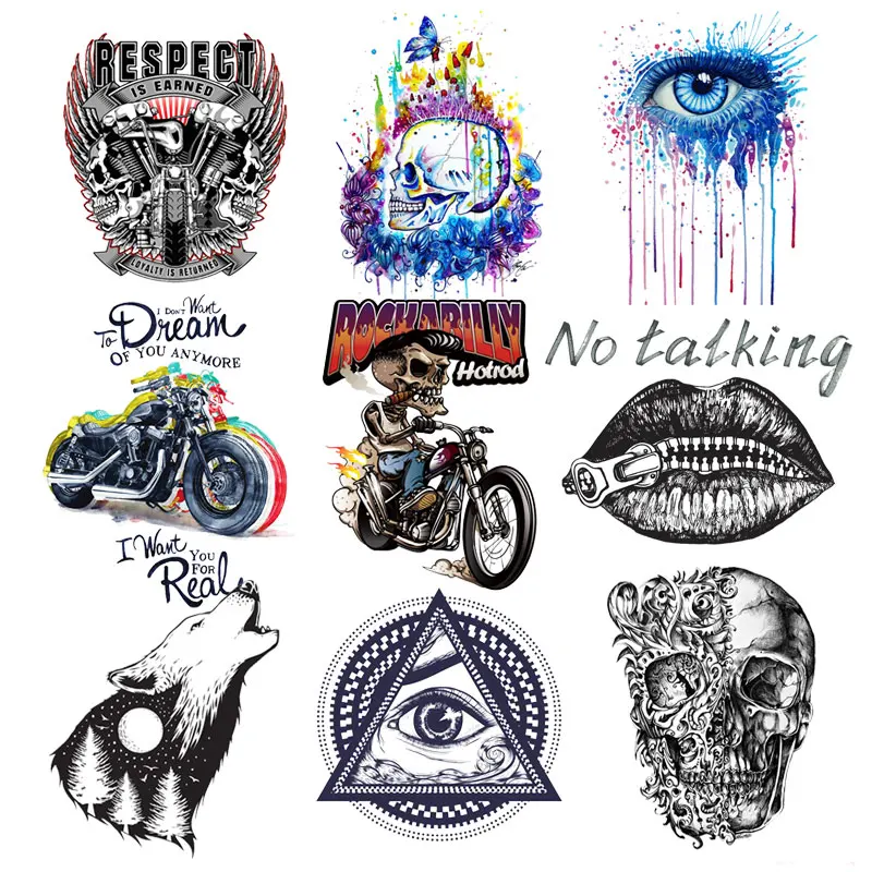 Наклейки в стиле панк/животных, наклейки с утюгом на одежду, череп/мотоцикл, теплопередача, винил для Детские футболки, наклейки с аппликацией «сделай сам»