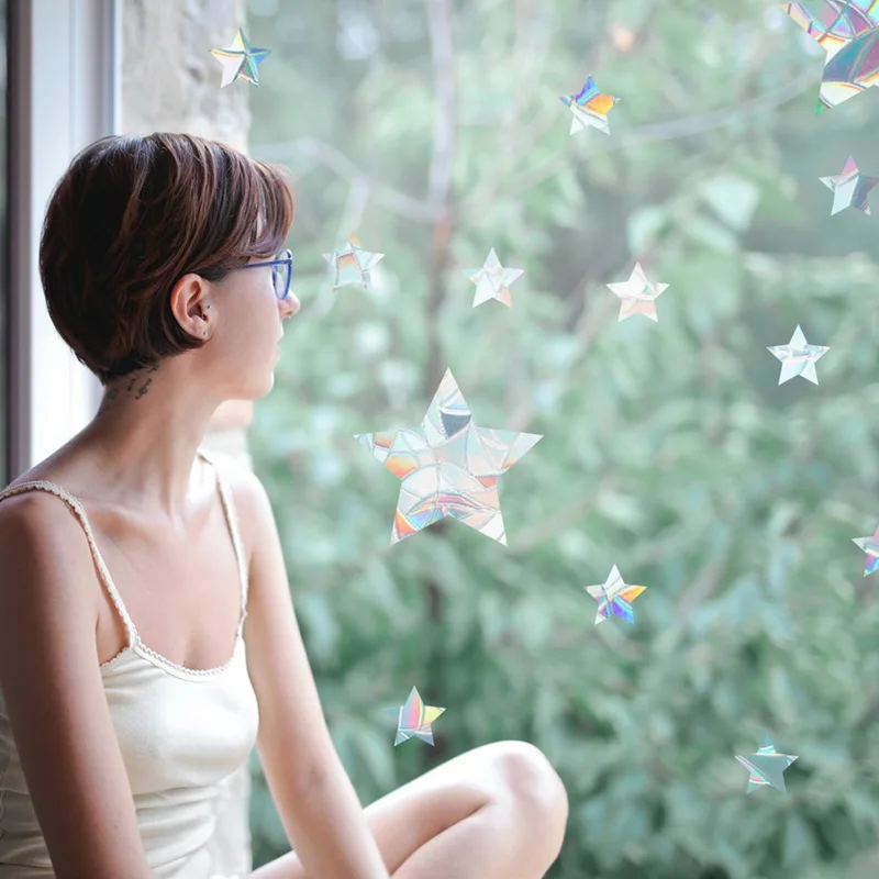 3D рефракционная наклейка с радужным эффектом, звезда, бабочка Baiyun, украшение, призма, Электростатическая вставка, стекло, домашний декор, настенные наклейки