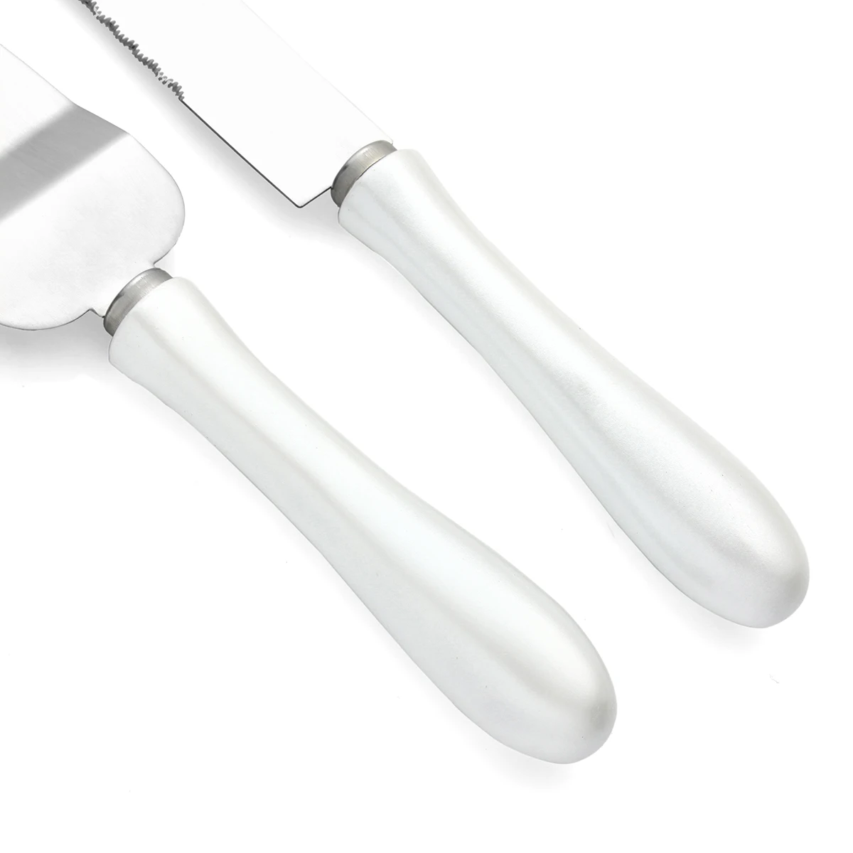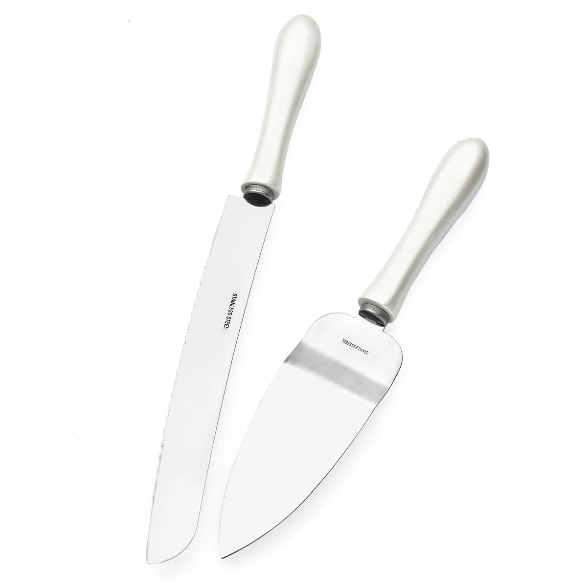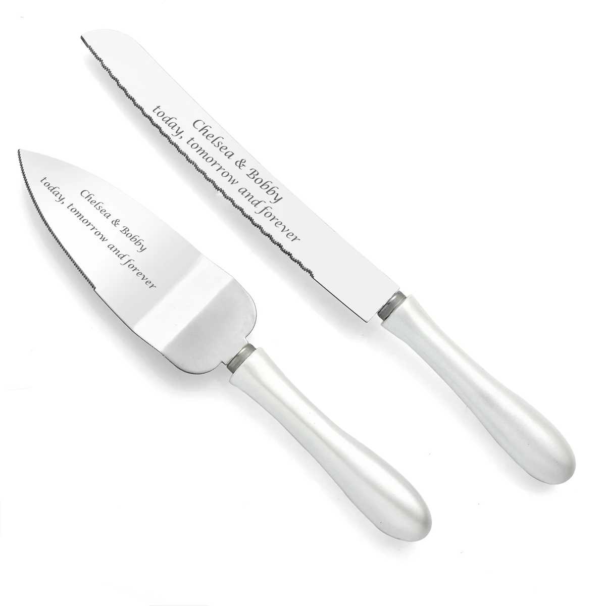 Сервировочный набор с гравировкой на заказ, нож и сервер для торта, персонализированный набор сервировочных ножей для свадебного торта, украшение для торта жемчужно-белого цвета