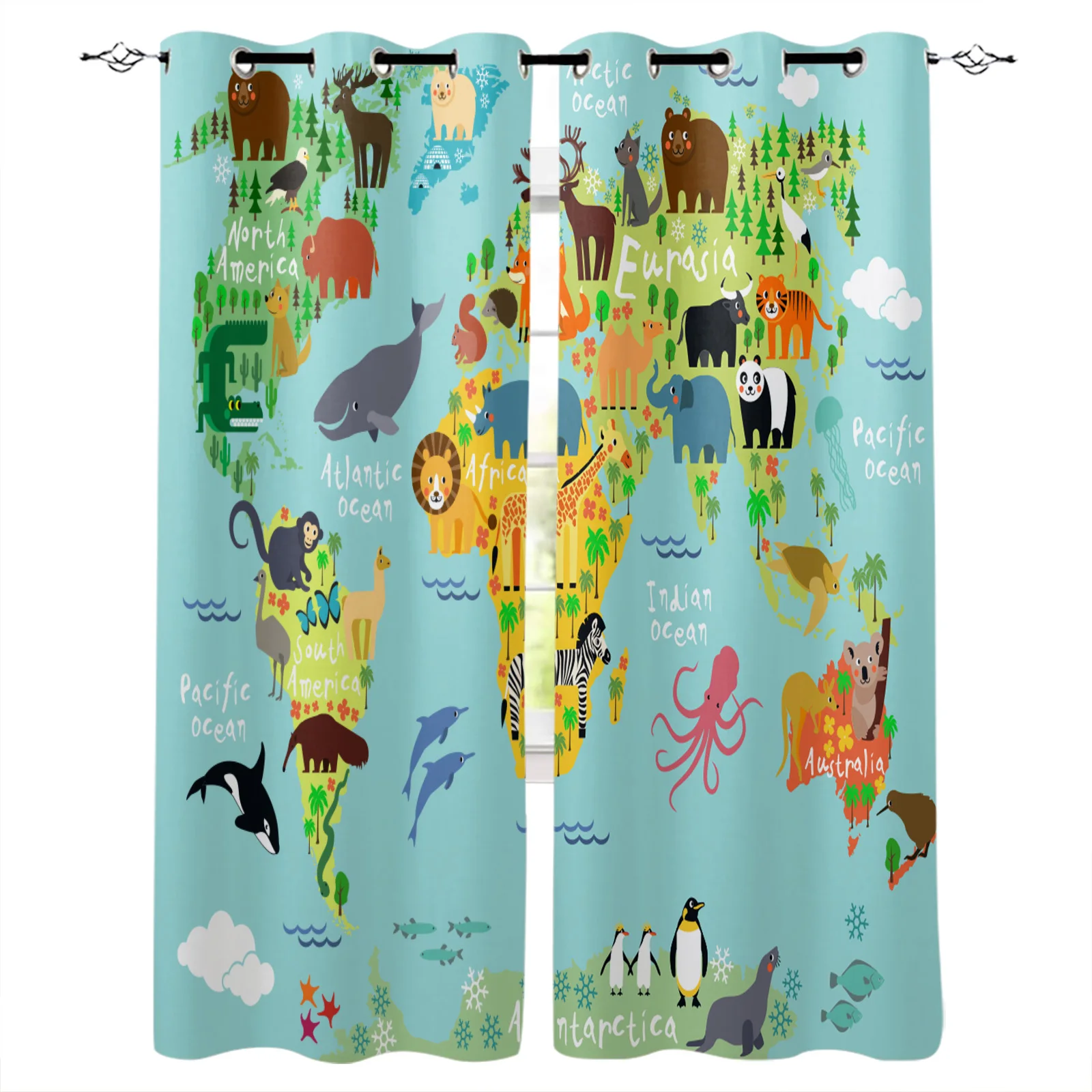 Мультяшные животные карта мира современные затемняющие шторы для гостиной s для кухни спальни оконные шторы