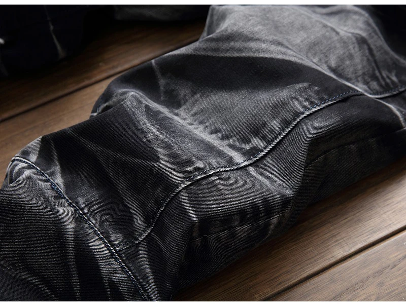 Ностальгические рваные мотоциклетные джинсы мужские прямые штаны ев...
