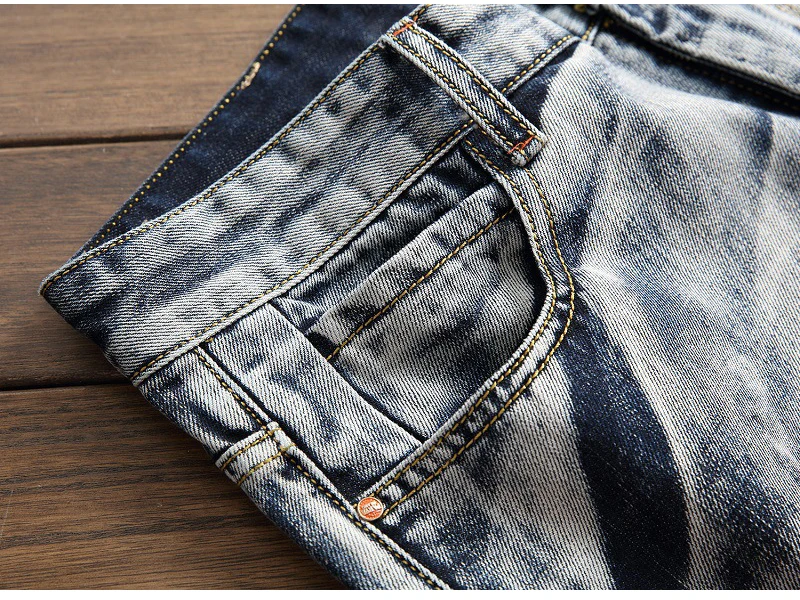 Прямые поставки 2020, байкерские Модные мужские винтажные джинсы, п...