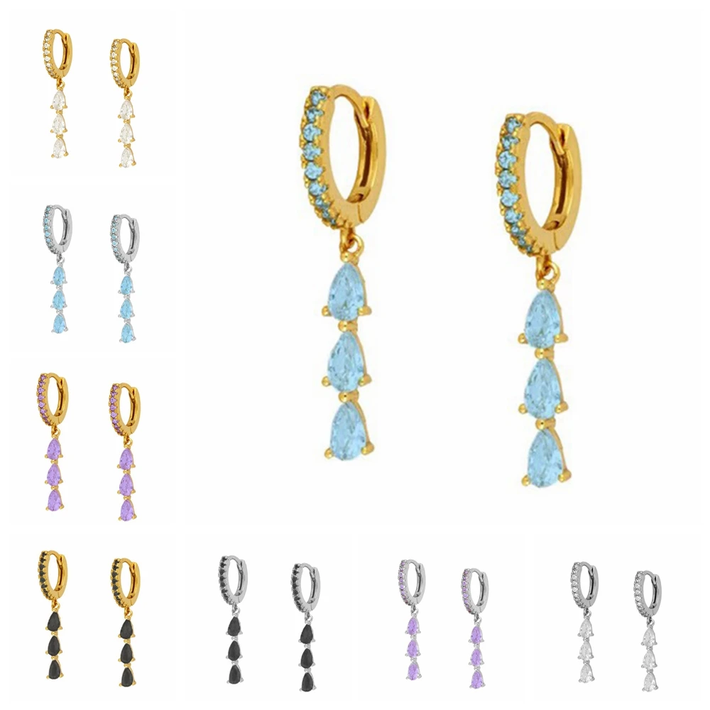 Роскошные медные серьги-кольца в форме капли воды с кристаллами для женщин и девочек, длинные серьги, красочные блестящие циркониевые серьги для пирсинга
