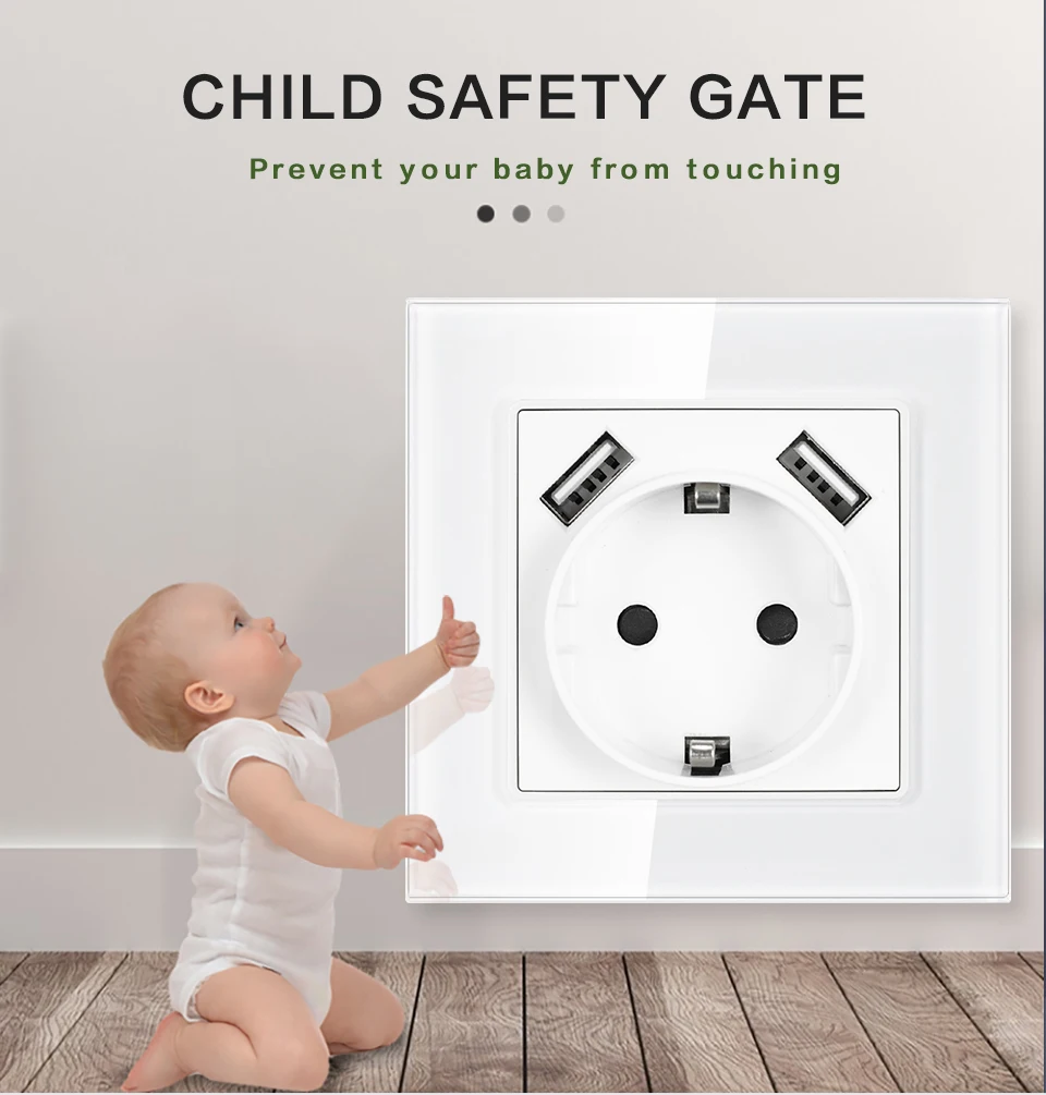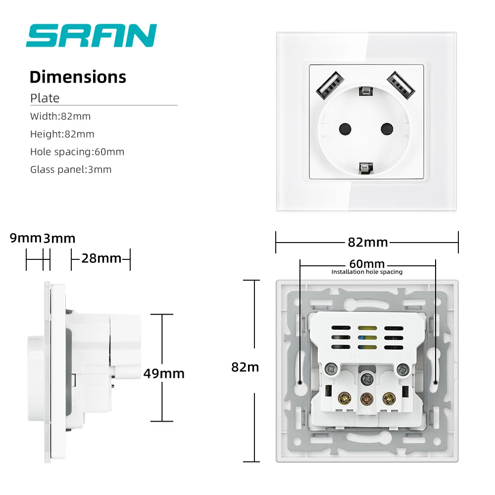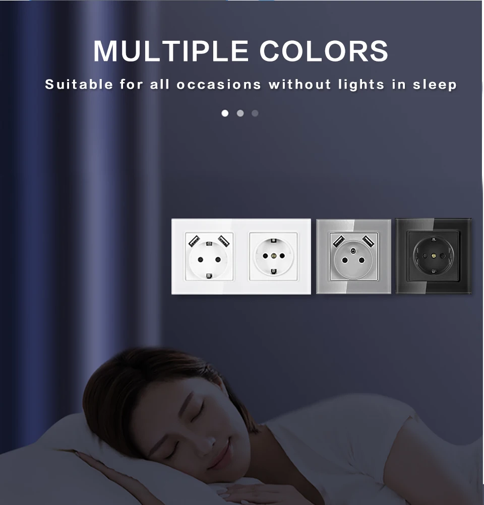 Розетка EU RU GR с двумя портами USBВходное напряжение: 110-250 В переменного токаВходная частота: 50 Гц/60 ГцUSB Выход: 5V 2100maРазмер панели 82 мм * 82 ммЦвет: белый/черный/серый