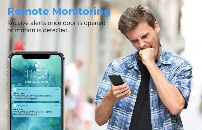Когда дверь/Окно открывается/закрывается, приложение отведет сигнал тревоги на ваш мобильный телефон. Вам не нужно беспокоиться о том, что ваш ребенок выйдет из дома без предварительного уведомления, и даже сможет четко узнать, когда кто-то входит в ваш дом/магазин/офис, где бы вы ни находились.