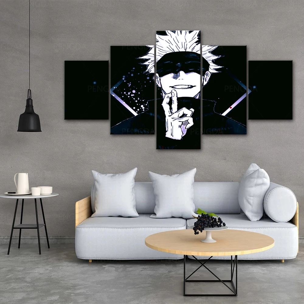 Модульный художественный Настенный 5 панелей, японские Мультяшные картины, живопись на холсте, домашний декор, Постер юютсу кайсен, рамка для коридора