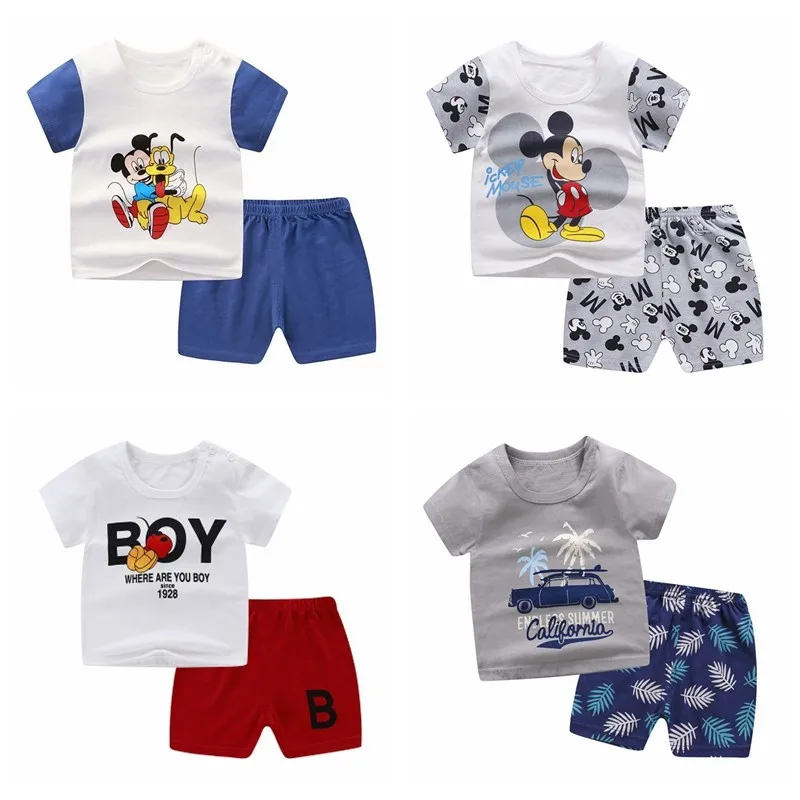 Брендовая Дизайнерская обувь с героями мультфильмов одежда с Микки-Маусом, комплект летней одежды для мальчиков, футболка + шорты для маленьких девочек повседневные комплекты одежды 2 шт.), раздел-детская одежда; Платья для девочек
