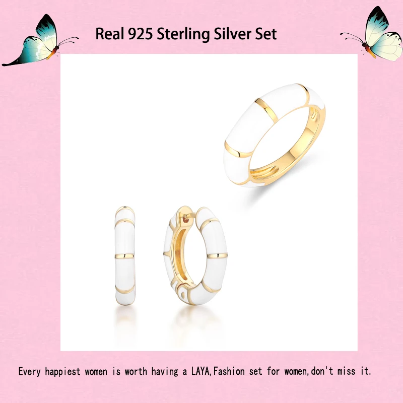 925 стерлингового серебра простой дизайн круг Белая эмаль серьги кольцо комплект ювелирных изделий для женщин на день рождения вечерние высокое качество, ювелирное изделие, подарок