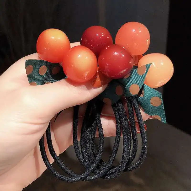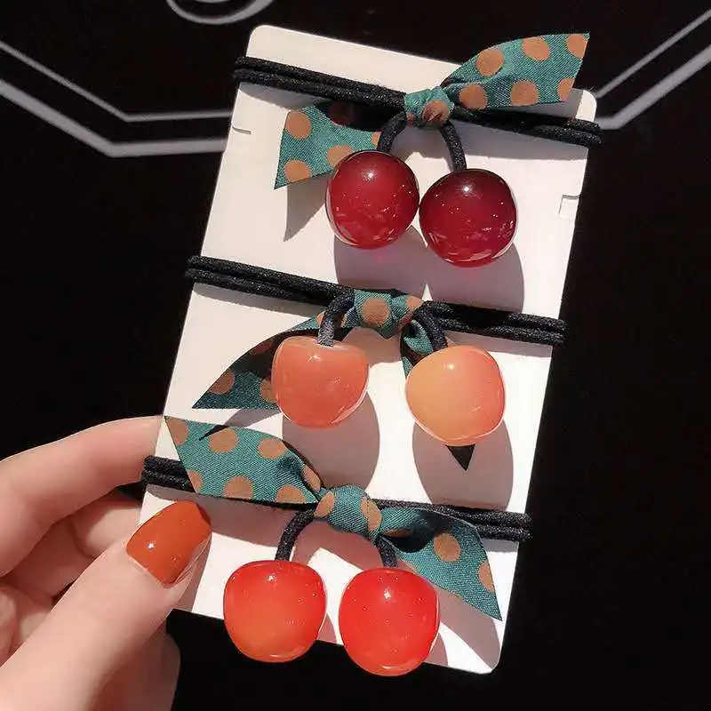 Женские резинки для волос, эластичные резинки с бантом, акриловые резинки для девочек с цветком вишни, медведем, бантом, корейские аксессуары для волос, Оптовая продажа