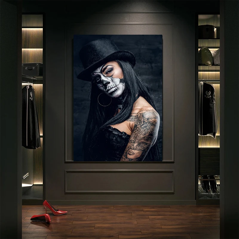 Картина на холсте, настенные художественные плакаты, черный череп, ...