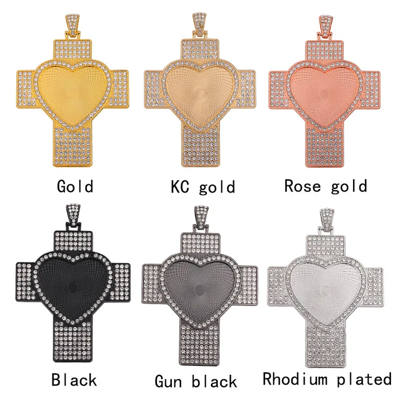 2 шт. крест основа Подвески с алмазной Стразы ободок кабошон основа 30 мм Сердце Пустой Лоток для DIY изготовления ювелирных изделий Аксессуары Дизайн ожерелья Фурнитура