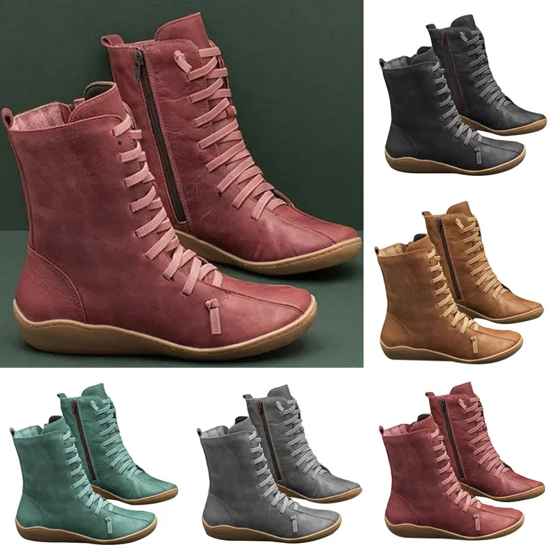 Женские осенние винтажные Ботильоны на молнии со шнуровкой, Дамская кожаная обувь в стиле ретро, женские высокие ботинки, женская модная обувь