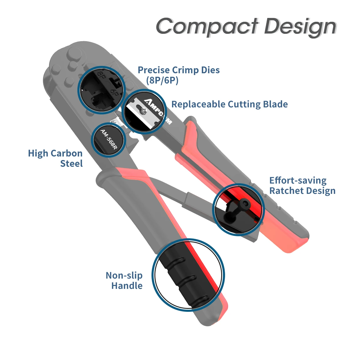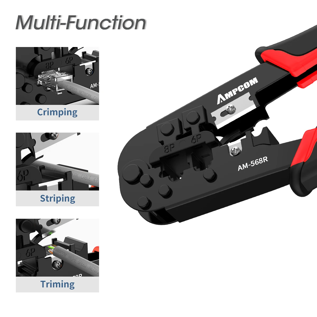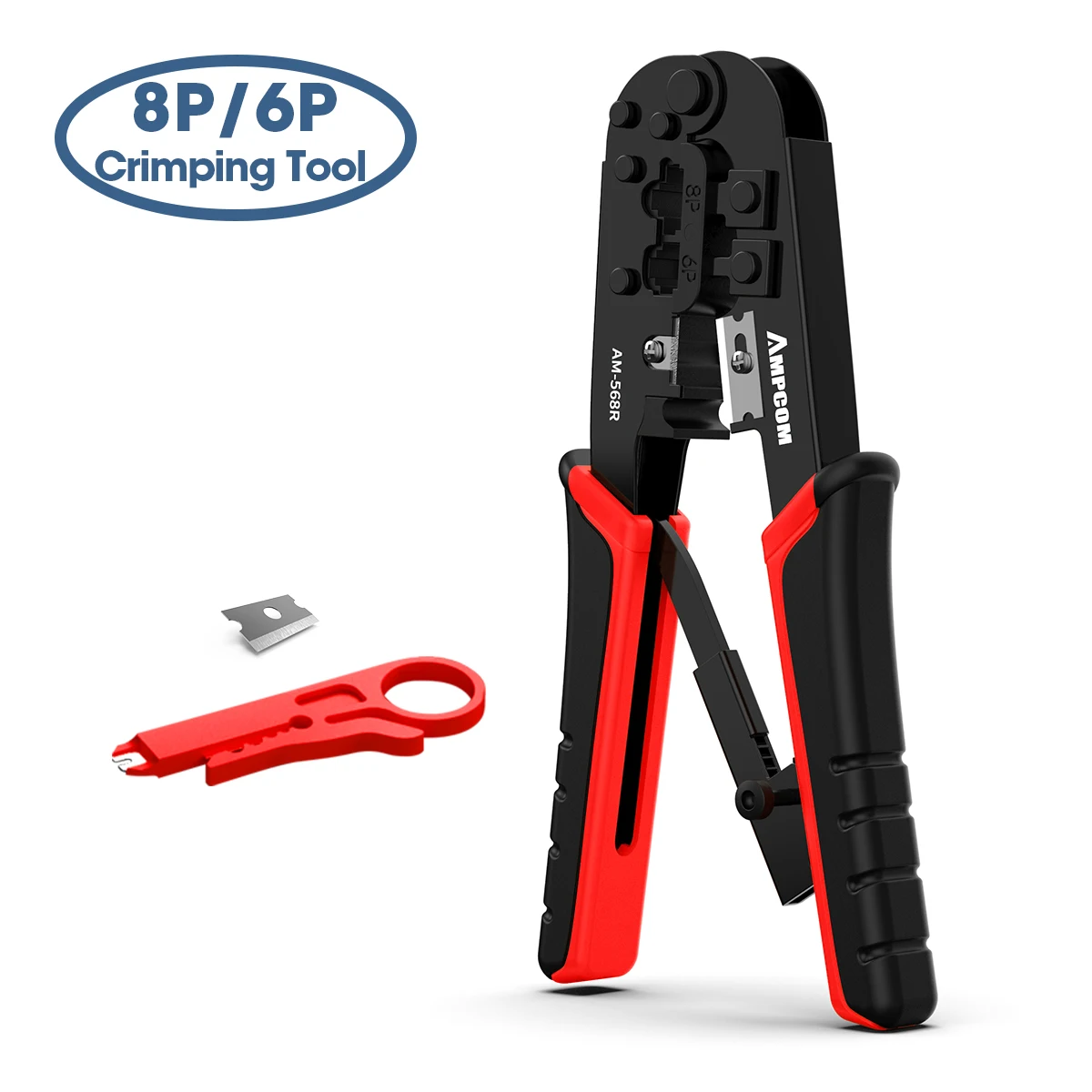 AMPCOM модульный RJ45 RJ11 обжимной инструмент с проводом резак и Стриппер сетевой кабель Ethernet Щипцы Резак для зачистки плоскогубцы для 6P 8