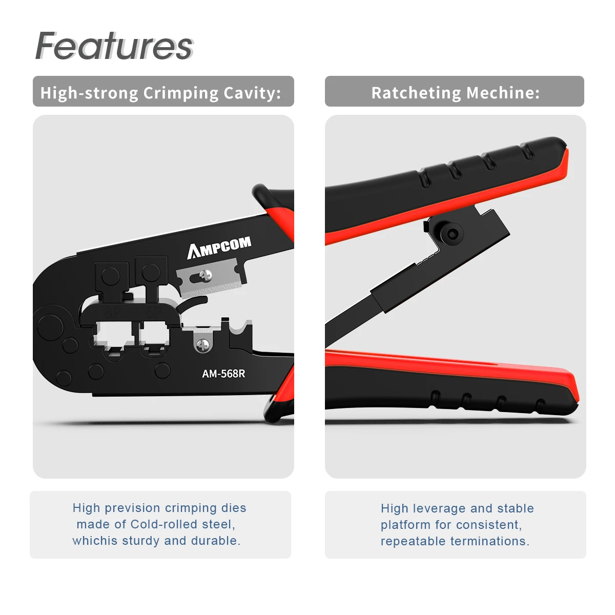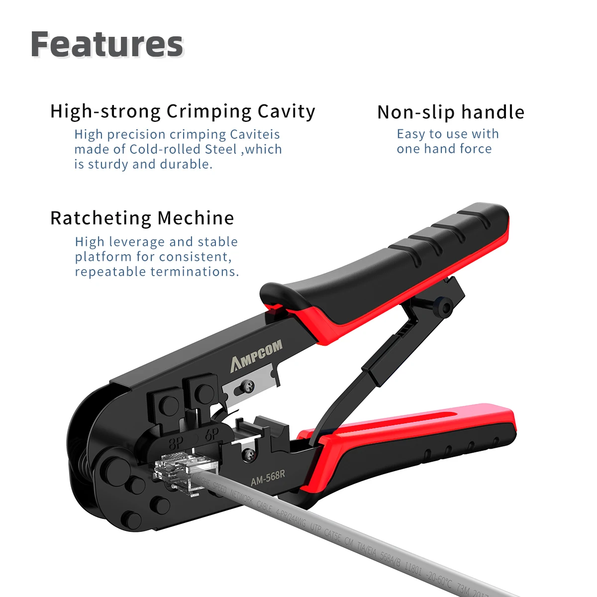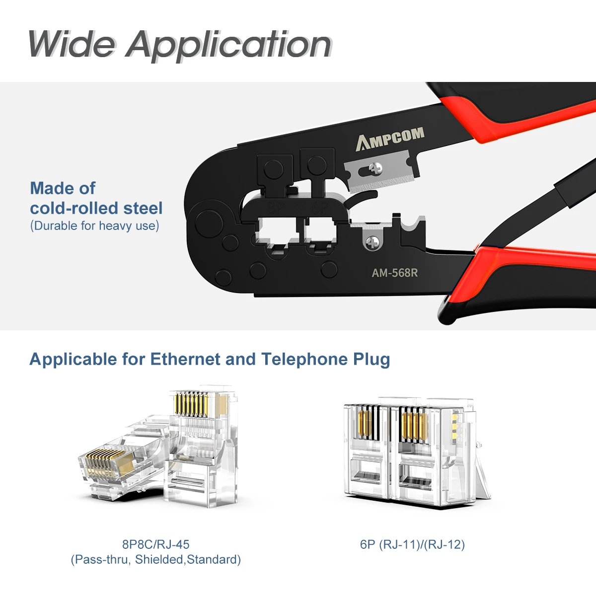 AMPCOM модульный RJ45 RJ11 обжимной инструмент с проводом резак и Стриппер сетевой кабель Ethernet Щипцы Резак для зачистки плоскогубцы для 6P 8