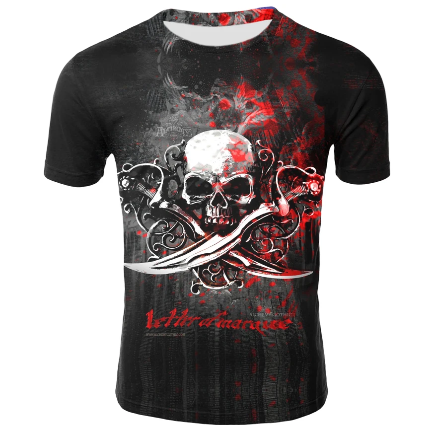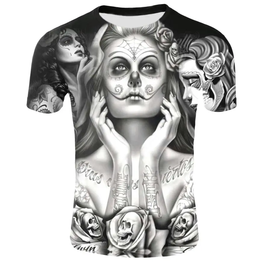 Мужская футболка с 3D-принтом черепа и ужасов, черный дышащий топ с...