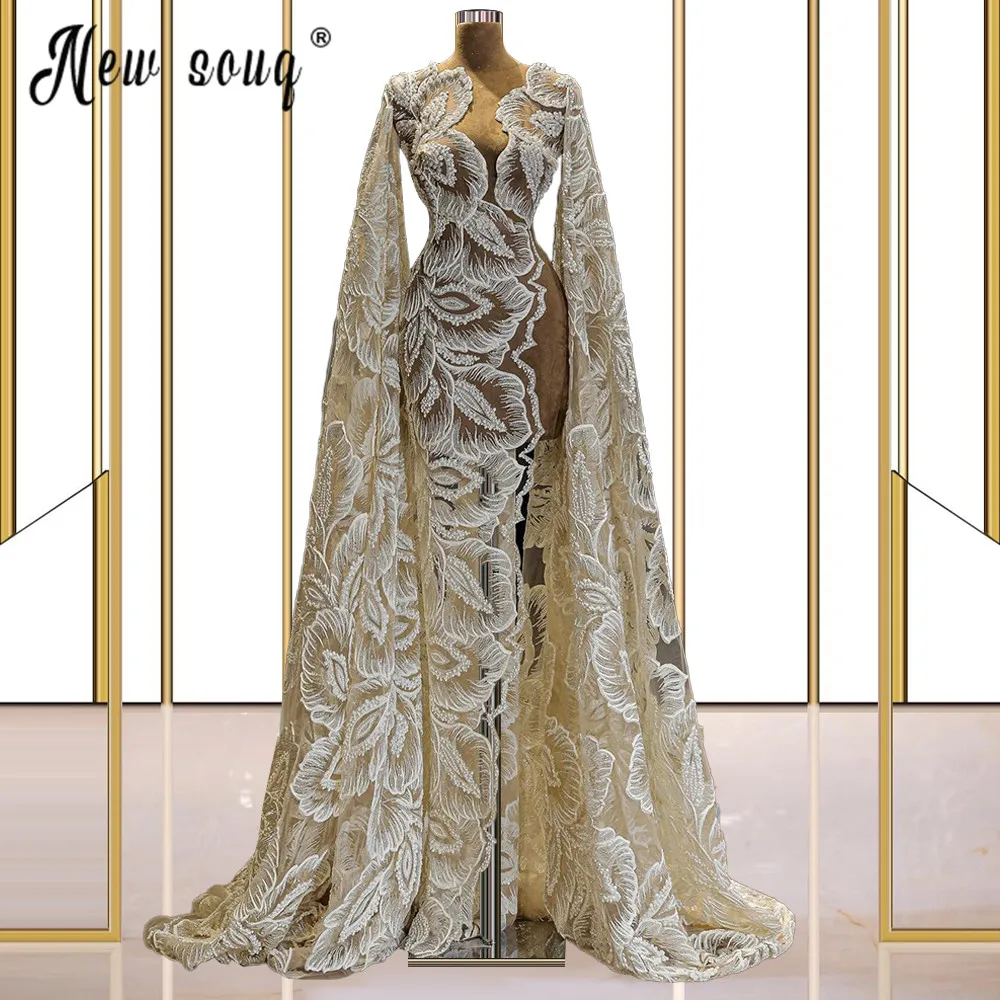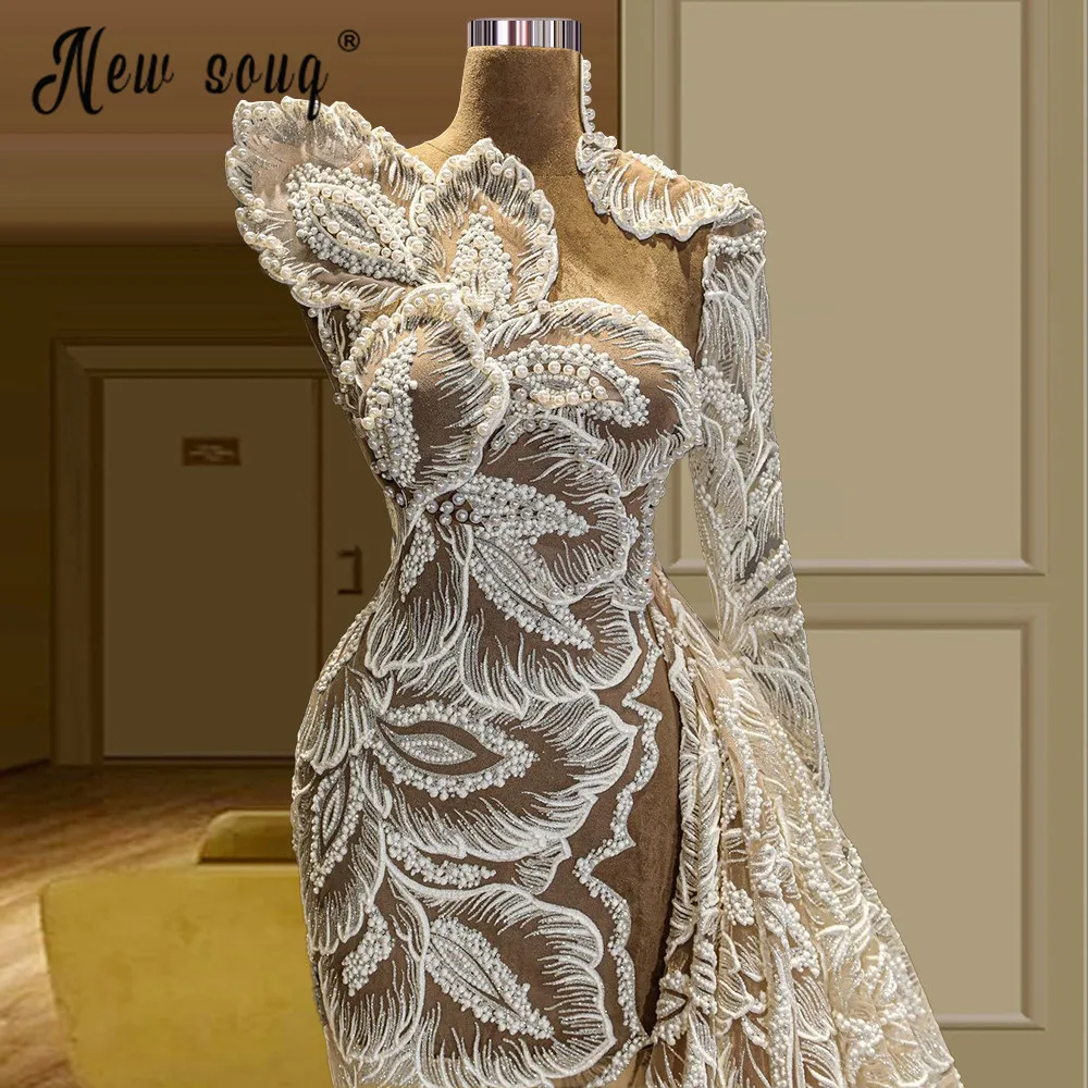 2021 размера плюс вечернее платье с расширенным съемным подолом, сексуальное вечернее платье из шифона русалка из кружевной одно плечо с длинными рукавами светильник шампанское роскошное торжественное платье на выпускной